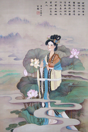 众多以中国历代名媛才女、神话传说、古典名著为题材的作品。画风
